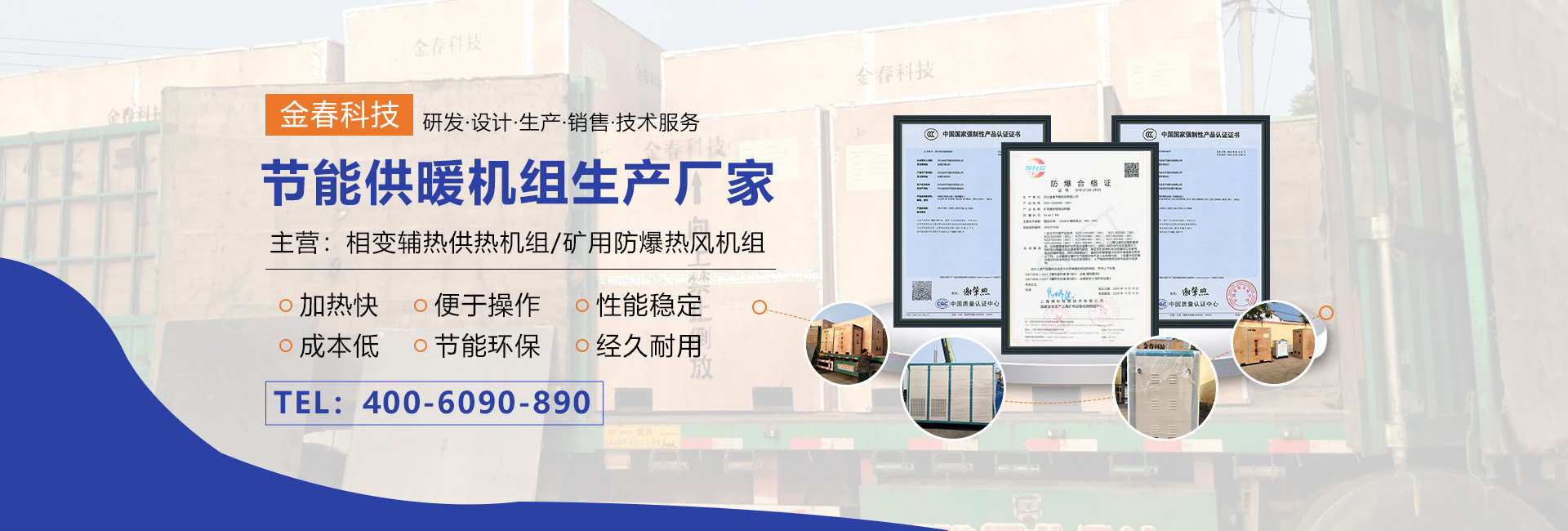 本公司專業(yè)生產(chǎn)相變輔熱供熱機(jī)組、礦用防爆熱風(fēng)機(jī)組,可代替燃煤、燃油、燃?xì)忮仩t,運(yùn)行成本低,具有加熱快、熱效率高、便于操作,節(jié)能環(huán)保等特點(diǎn),是新一代理想的環(huán)保節(jié)能產(chǎn)品。